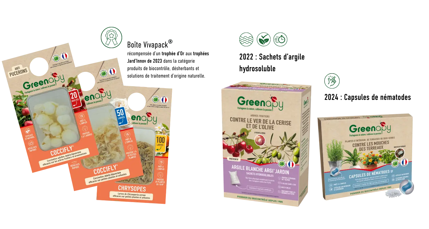Comme Biotop précédemment, Greenapy est la marque de biocontrôle dédiée aux jardiniers amateurs de Bioline Agrosciences.