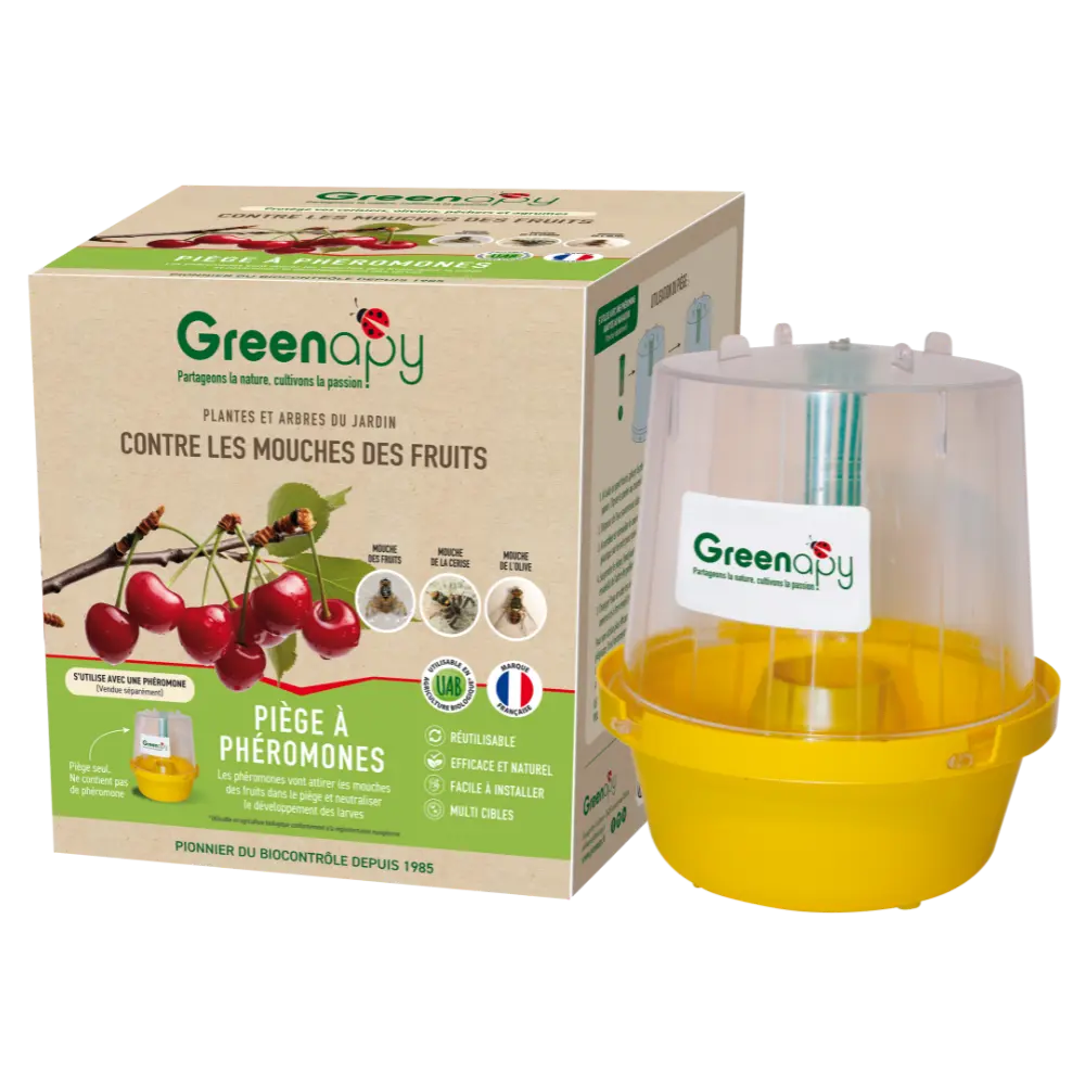 Il est facile et rapide à l’installation. Le piège est conçu pour résister les intempéries et être utile pendant plusieurs années. Il ne représente aucun risque pour les enfants et les animaux domestiques. Une solution naturelle pour lutter contre la mouche de la cerise, la mouche de l’olive, la mouche méditerranéenne des fruits et la mouche domestique.